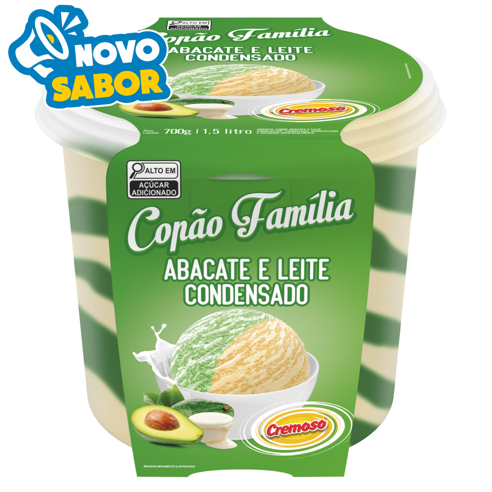 INGREDIENTES: Água, açúcar, composto lácteo (soro de leite líquido, xarope de glicose, gordura vegetal, concentrado proteico de soro de leite em pó, leite em pó desnatado, leite em pó integral, leitelho em pó, aromatizantes, regulador de acidez bicarbonato de sódio e emulsificante mono e diglicerídeos de ácidos graxos), xarope de glicose, sabor artificial abacate, sabor artificial leite condensado, gordura vegetal, emulsificantes ésteres de ácidos graxos com propilenoglicol e mono e diglicerídeos de ácidos graxos, goma guar, carboximetilcelulose sódica, estabilizante difosfato tetrassódico e antioxidante mistura concentrada de tocoferóis, aromatizantes sintéticos, corantes artificiais: amarelo tartrazina, amarelo crepúsculo FCF e azul indigotina. CONTÉM GLÚTEN. CONTÉM LACTOSE. ALÉRGICOS: CONTÉM DERIVADOS DE LEITE E SOJA.